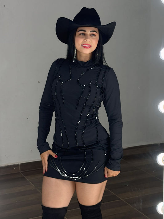 Conjunto Cropped e Saia Strass Franjas Importado | Look Balada e Western