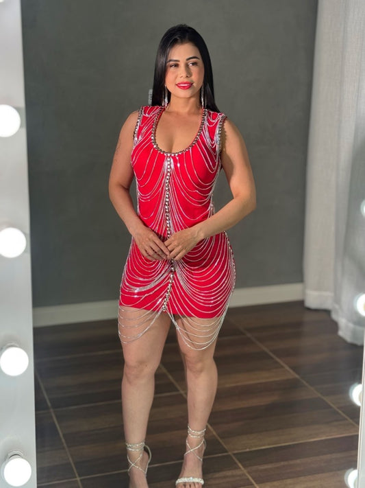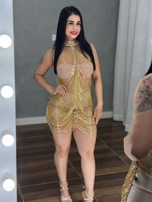 Vestido Corrente Luxo Baladinha | Poliamida Beach Gloss e Brilho Total
