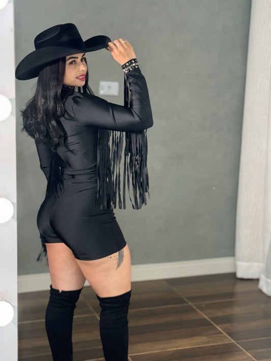 Macaquinho Franja e pedrarias Jade | Manga Longa, Moda Country Feminina
