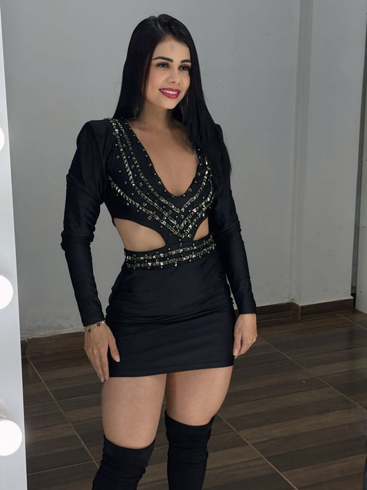 Vestido Curto Alice | Tecido Modelador, Pedrarias e Brilho para Festa