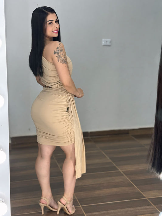 Vestido Mula Manga Fenda Beth | Short Embutido e Poliamida Anticelulite