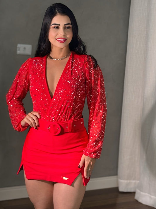 Short saia Montaria com Cinto | (preto, branco e vermelho)