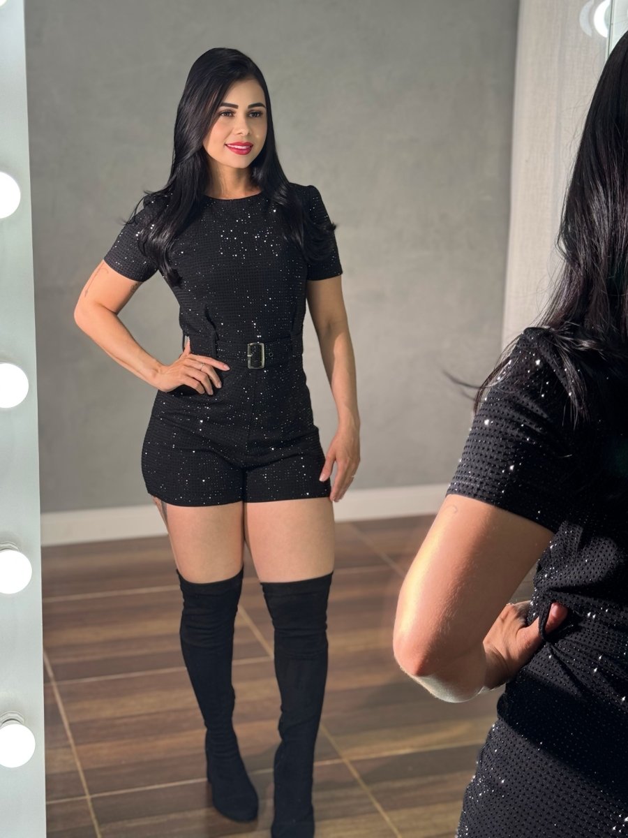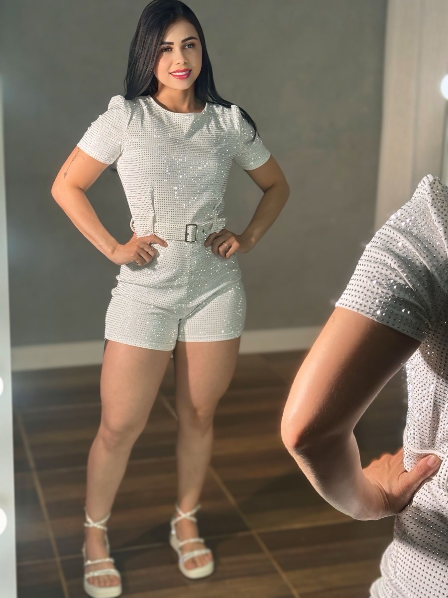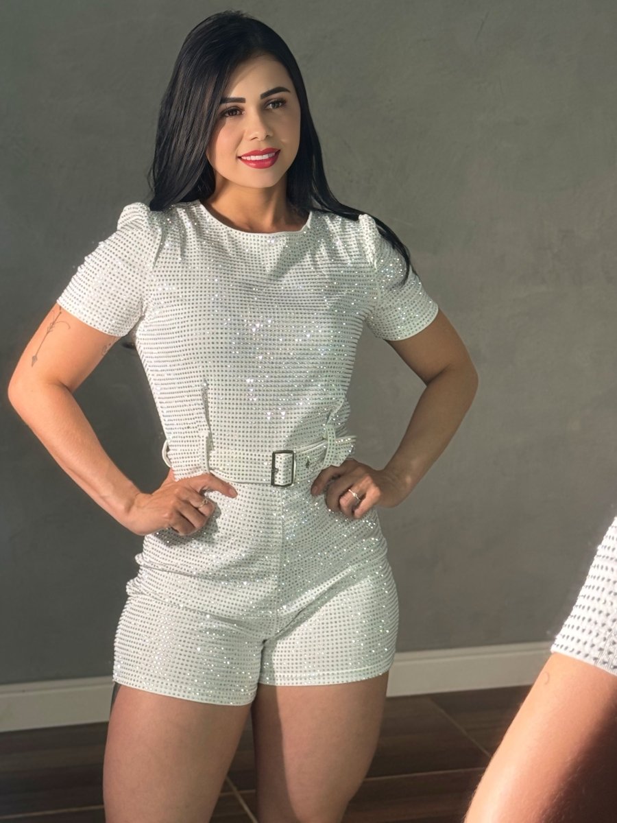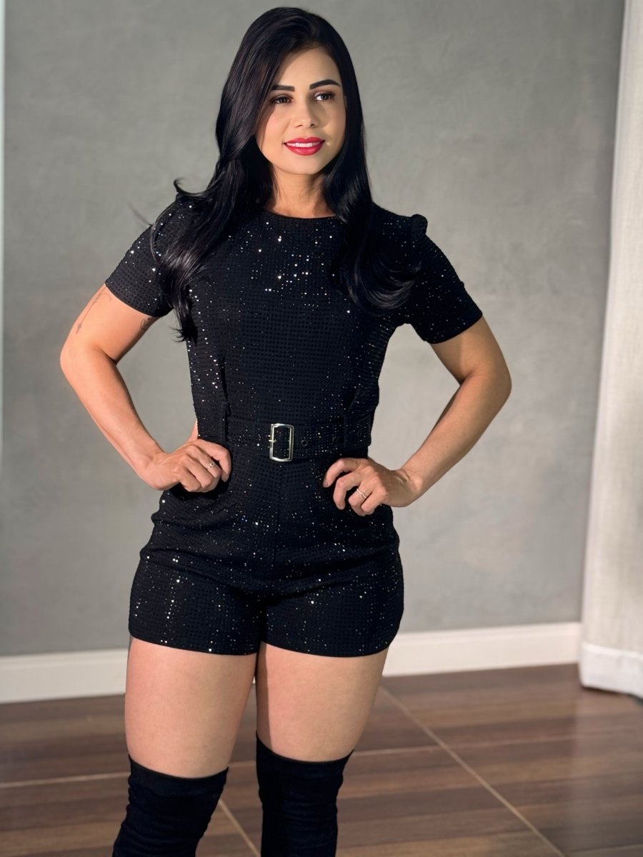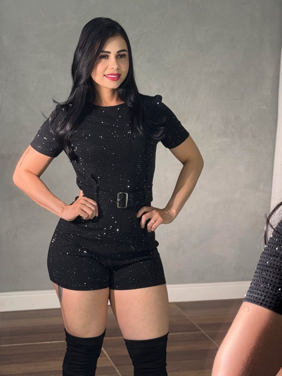 Conheça os diferenciais que tornam este Macaquinho Curto Strass Importado exclusivo: