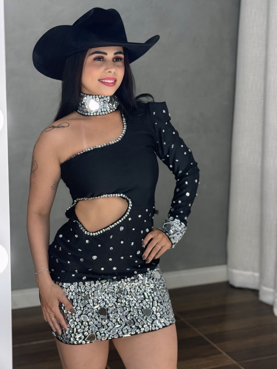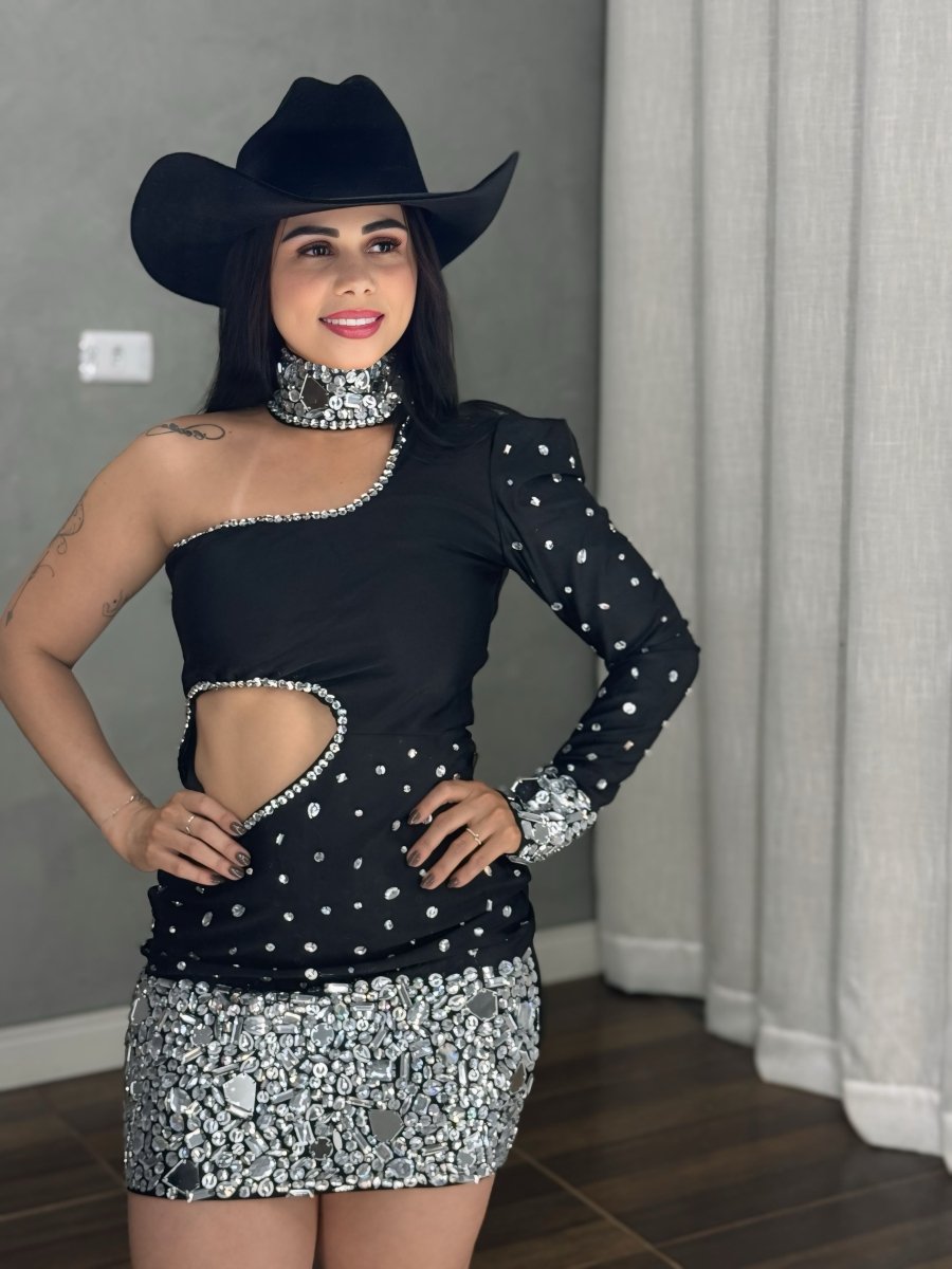 O Vestido Helena é a peça que define o Look Balada com ousadia e sofisticação! Este Vestido Ombro Só Pedraria Luxo é uma obra de arte, combinando um design assimétrico de alto impacto com aplicações de pedrarias e espelho luxo que garantem um brilho inesquecível.